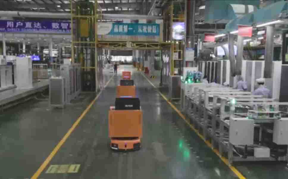 为车载冰箱物流配送打造的智能解决方案,,,包含产中物流通过潜伏举升AMR搬运至线边,,,,产后成品物流智能仓储,,流程包含产中物流智能齐套入库,,,,线边安灯叫料AMR智能配送至线边,,,,成品入库、、出库,,,,通过无人堆高车机器人,,智能仓储管理替代人工作业管理,,,实现更高存储、、、、更高效率、、、、更具柔性化的解决方案。。。